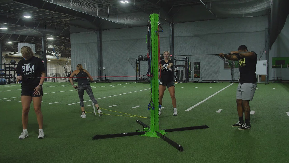 A revolutionary resistance band workout machine designed to maximize strength and increase flexibility. From people just beginning their fitness journey, to professional athletes, the band machine is the perfect portable exercise equipment to help them reach their goals.